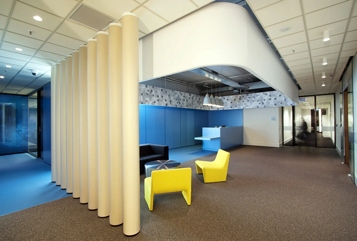 American Express is one of the world’s most recognised brands and has been in the financial services industry for over 160 years. FutureSpace worked with CBRE and FDC to design and deliver approx. 3,000m2 of workspace in a heritage restricted building in Melbourne’s CBD. The project implemented Amex’s global standards (the ‘Bluework’ program) and included key strategies to assist American Express to achieve both cultural and business objectives. Various divisional units’ behaviour is catered for via a range of custom work settings, and the conceptual design has been inspired by the American Express brand; one bold colour was used and the built form was evolved from the American Express square logo.