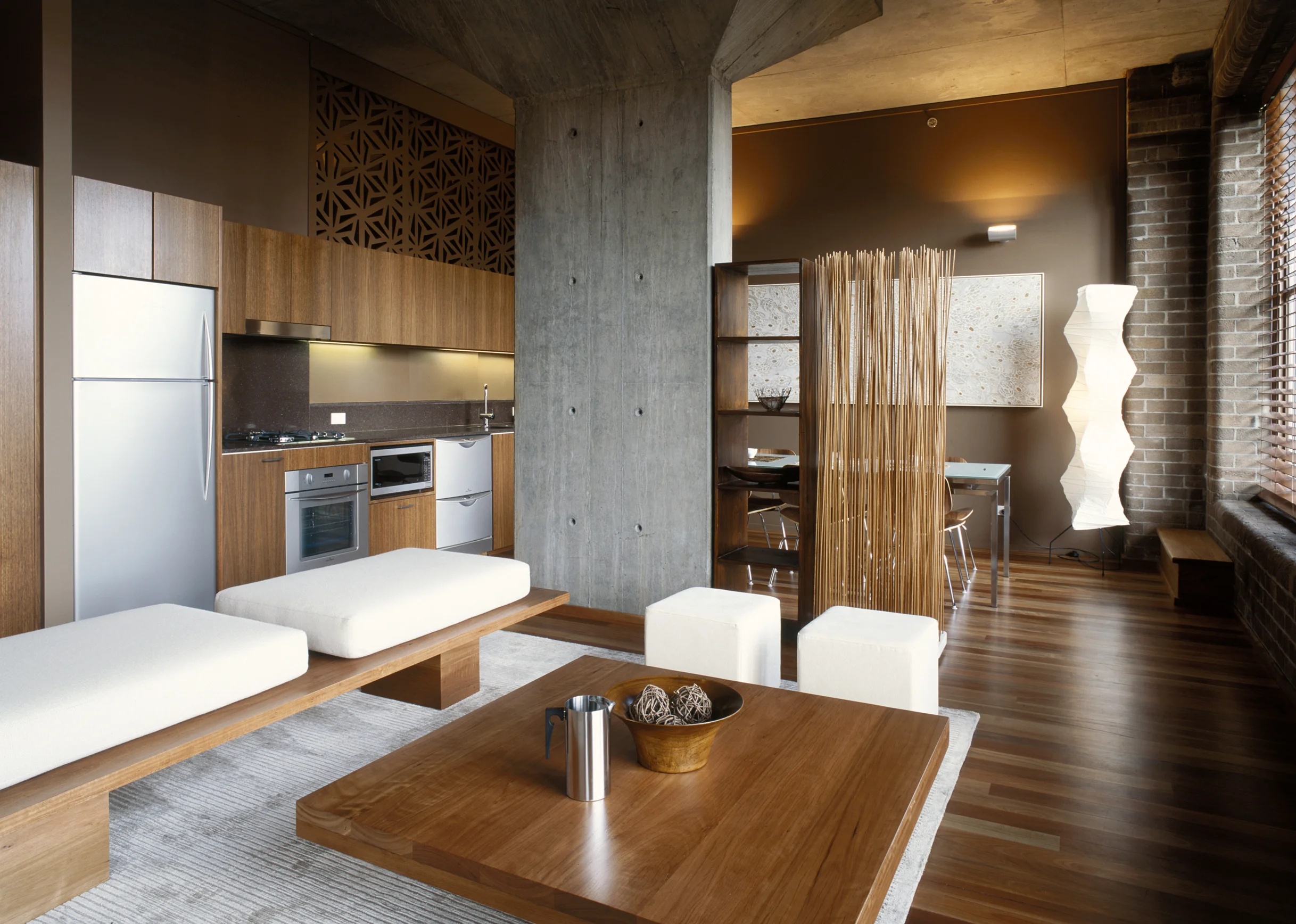 Another theme was ZEN, and included furniture, accessories and artwork based on this notion. Intended to appeal to a younger more urban buyer, these apartments include low furniture that emphasizes 3m + ceiling heights. The overall space has an aura of calm, quiet contemplation in the middle of the bustling city of Sydney.