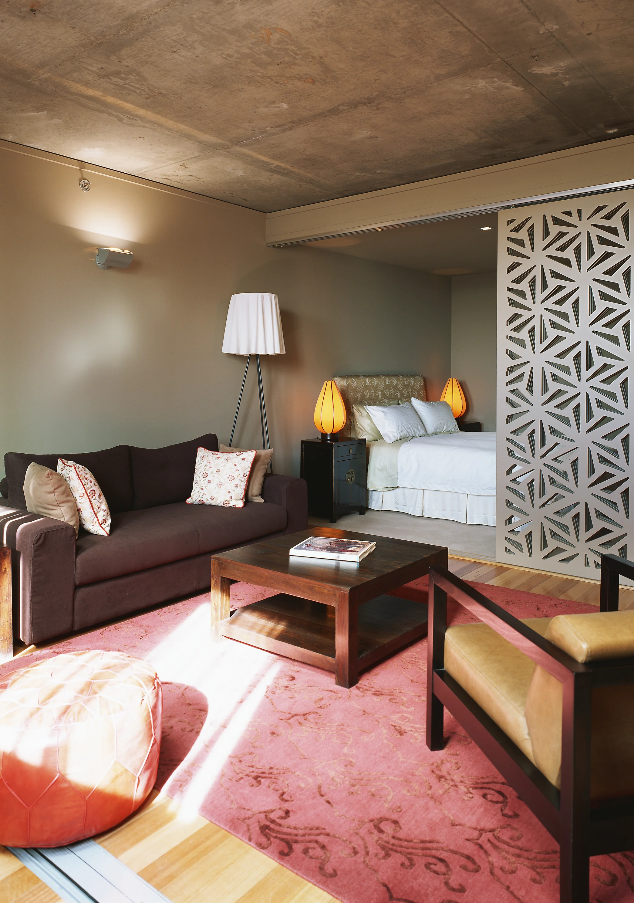 One theme was CLUB, and included furniture, accessories and artwork based on this idea. Intended to appeal to the older ‘empty nester’ market, these units have the feel of a contemporary and luxurious hotel. The pieces in the apartment are eclectic and unique, with distinct Asian and African influenced pieces.