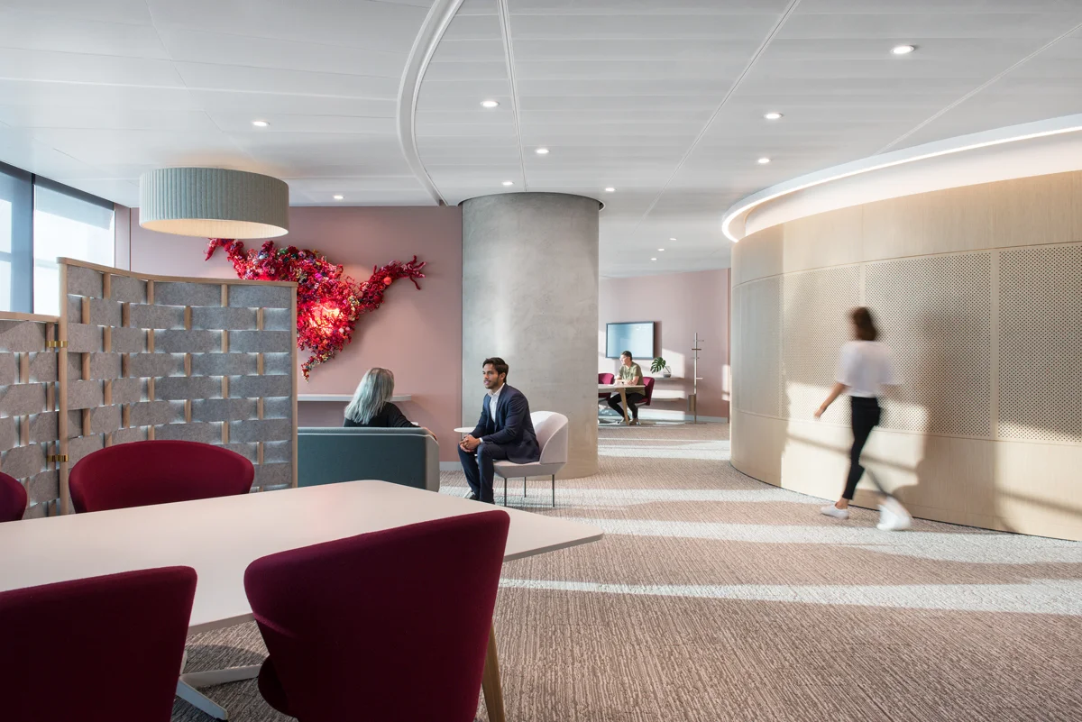 These four Client Collaboration Floors challenge old ideas of formal client interactions and boardroom meetings. As this is a completely new way of working the design of the space needed to support people through this process of learning to use a new type of environment. The Client Collaboration floors have been designed to be intuitive, and to give people ‘permission’ to use the environment in ways that best suit their needs.