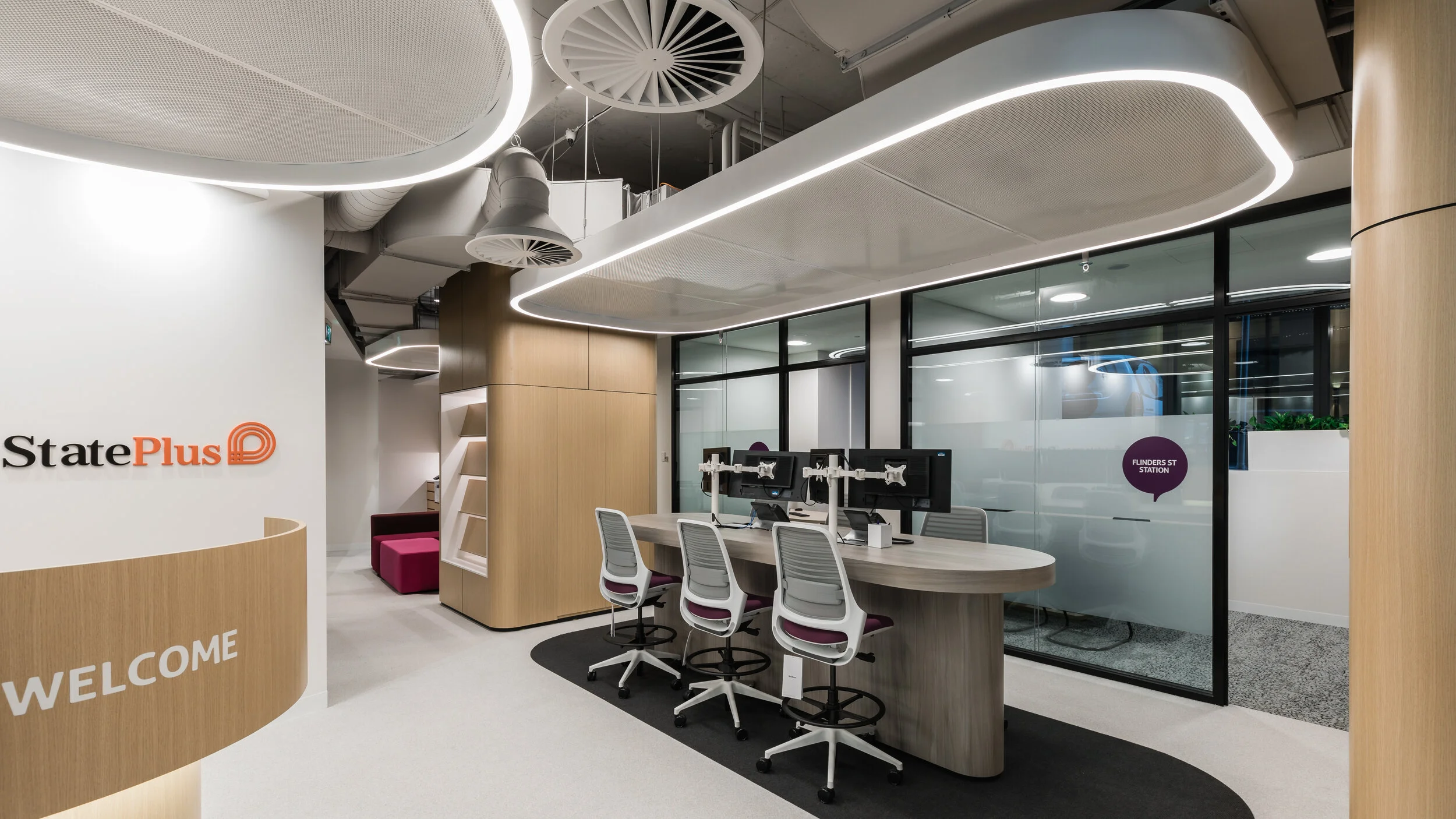 Futurespace worked with First State Super & State Plus (FSS & SP) to translate their ‘Member First’ approach to their flagship retail store on Bourke Street. The new environment shifts the focus to the member and the transition to an open working environment allows for FSS & SP’s people to interact and intersect with the member experience.