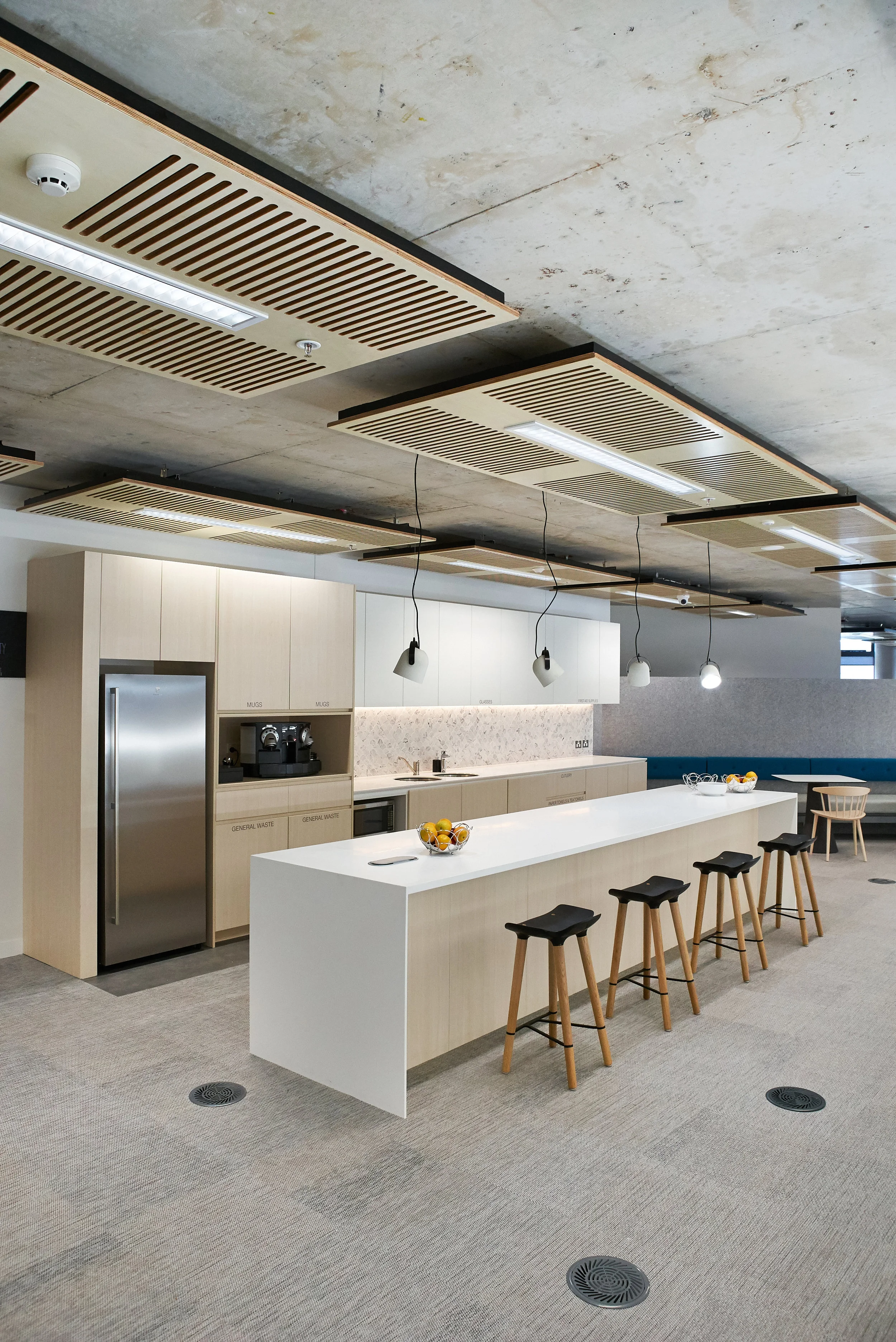 SSFS’s workplace is designed to facilitate an imminent move to a paperless environment. The planning was also developed to enable the development of more agile workstyles including the potential for implementation of ABW in the future. One of the main features of the design is the kitchen, which is designed as a big family gathering space and has all the features of a great home kitchen, supporting staff in their goals around work/life balance.